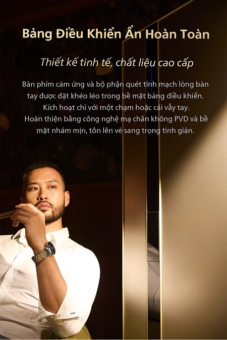 Khi ở chế độ chờ, toàn bộ bề mặt trông như một khối kim loại nguyên bản, đơn giản mà đầy cuốn hút; chỉ khi người dùng tiến lại gần, chạm hoặc vuốt nhẹ thì đèn LED mới sáng lên, sẵn sàng cho thao tác mở khóa.