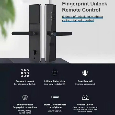 - 5 tính năng mở khoá: Dùng vân tay, mã số, thẻ từ, chìa cơ, App ttlock