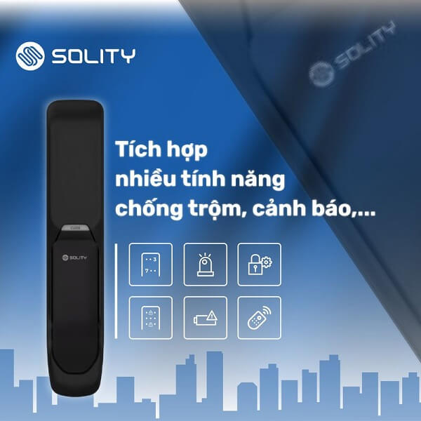 Khoá cửa vân tay Solity GP-3000BK được thiết kế kiểu dáng thẳng đứng sang trọng và đẳng cấp. Khoá vẫn trang bị sẵn 5 tính năng mở khoá: Vân tay, mã, thẻ, chìa cơ khẩn, APP