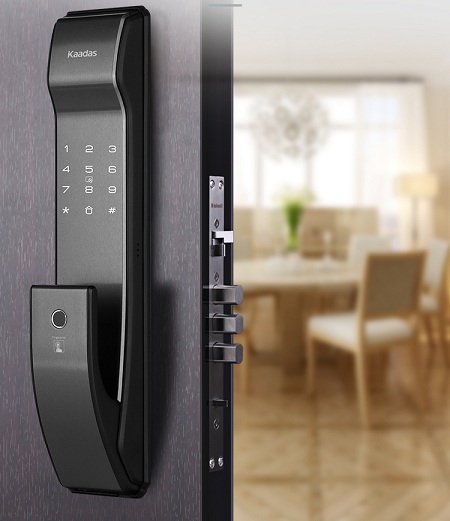 Được nâng cấp từ Kaadas K7, điểm nội trội của Kaadas K9 là vân tay được thiết kế ngay trên tay cầm khoá. Giúp thao tác mở khoá nhanh hơn, dễ dàng hơn.